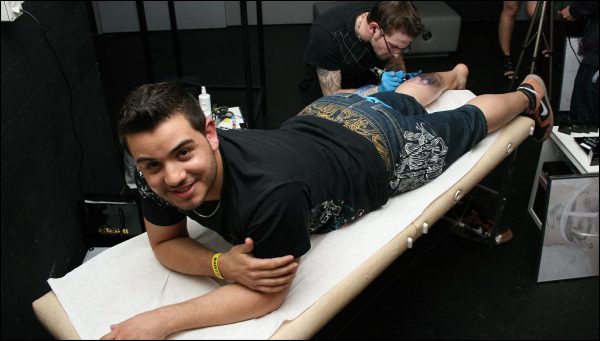 Vor ein paar Tagen habe ich darüber berichtet, dass sich eine Amerikanerin aus Salt Lake City den Werbeslogan “Goldenpalace.com” auf ihre Stirn tätowieren liess. Meine Schwester hat mich nun darauf aufmerksam gemacht, dass es auch hier in der Schweiz ähnlich verrückte Personen gibt. Milad Jahangir, Jura-Studen, hat sich das Logo des Clubs Härterei tätowieren lassen. Als Gegenleistung darf er nun lebenslang gratis in die Härterei. Übrigens, das Tattoo hat er auch noch kostenlos erhalten, wie 20 Minuten berichtet.